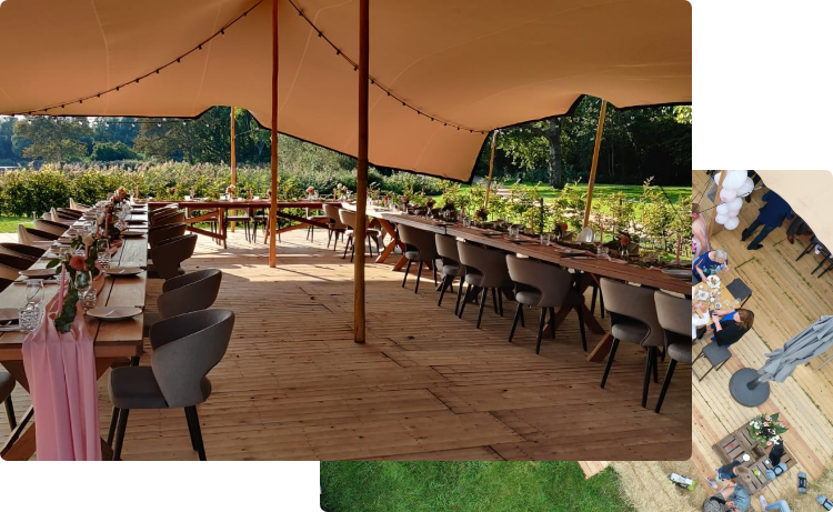 We denken graag met je mee en bieden een passende oplossing. Of het nu gaat om een kleine, intieme bruiloft of een grootschalige, luxe viering: wij hebben de juiste vloer voor jou. Onze vloeren zijn niet alleen stevig en stabiel, maar ook stijlvol en elegant. Zo creëer je in een handomdraai een prachtige sfeer waarin gasten zich comfortabel voelen en optimaal kunnen genieten van uw speciale dag.